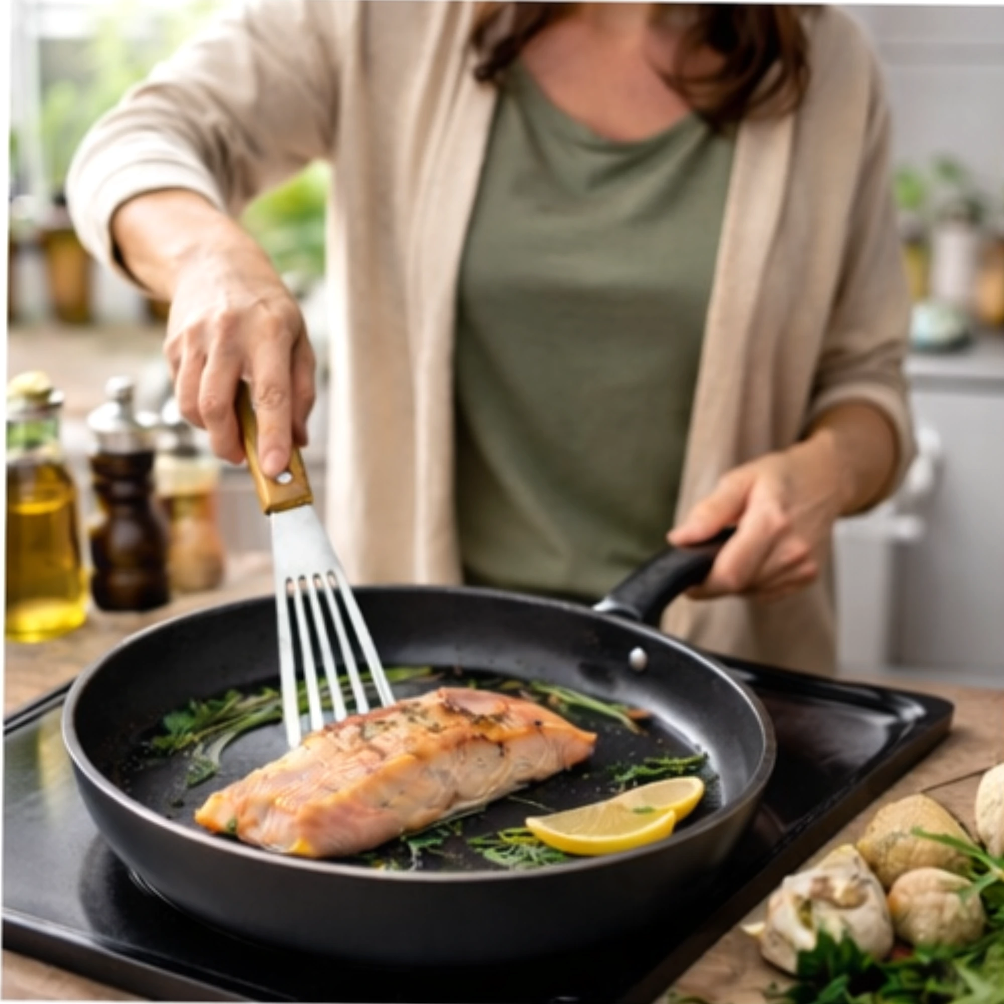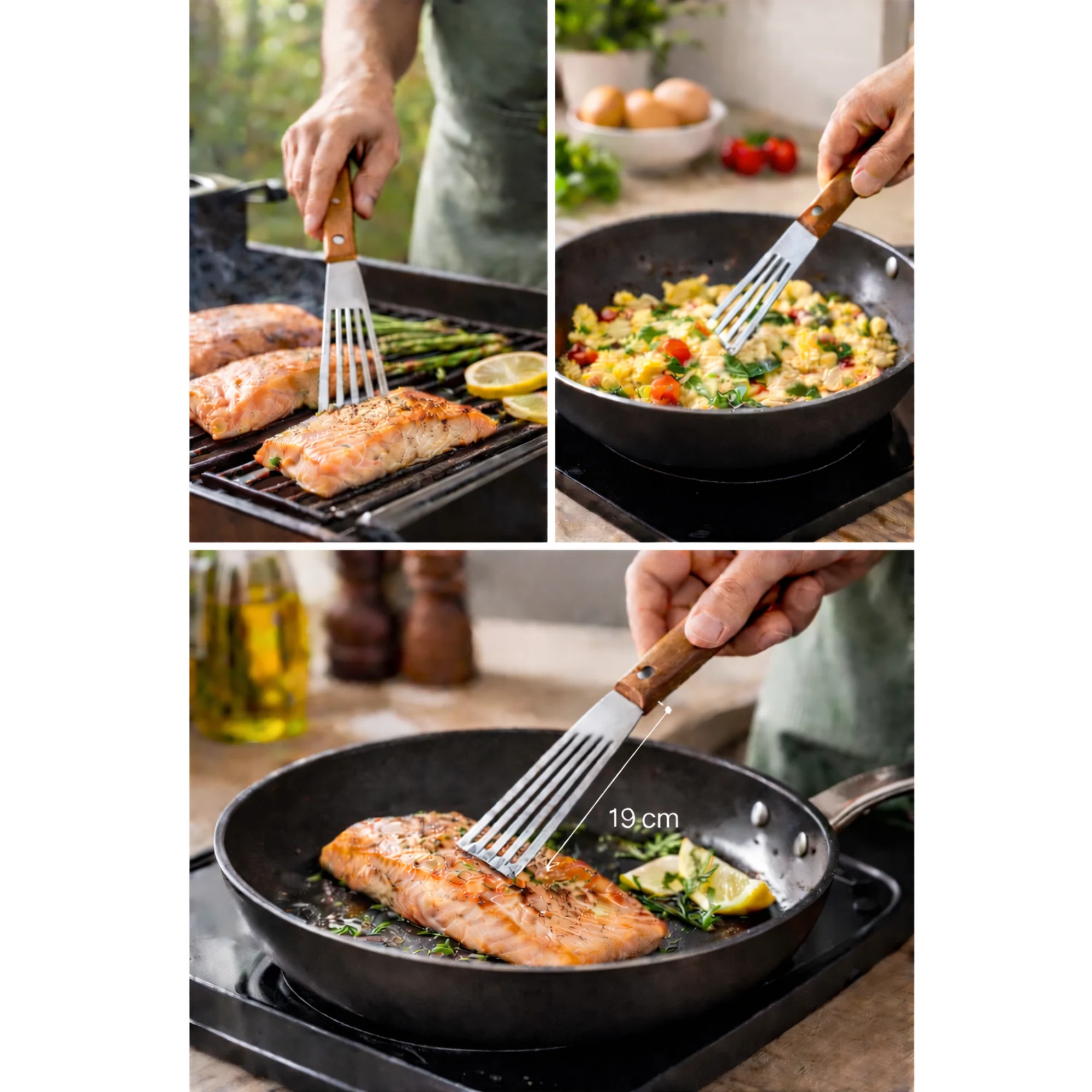 Een stijlvolle, functionele visspatel die precisie, comfort en duurzaamheid combineert – perfect voor dagelijks gebruik in de keuken of buiten bij de BBQ.