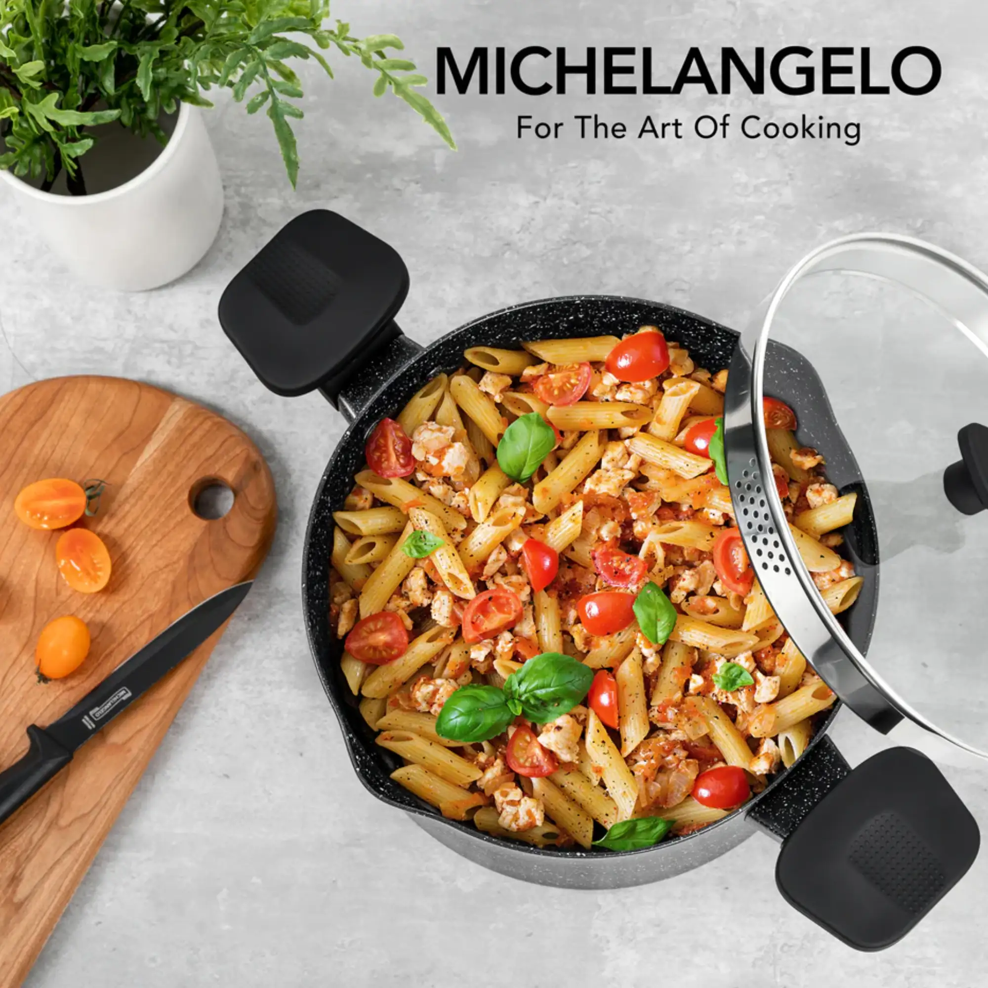 Deze ruime pastapan van 6 liter heeft een ingebouwd afgietdeksel en een duurzame antiaanbaklaag. Geschikt voor inductie en alle andere warmtebronnen – ideaal voor pasta, soepen en meer.