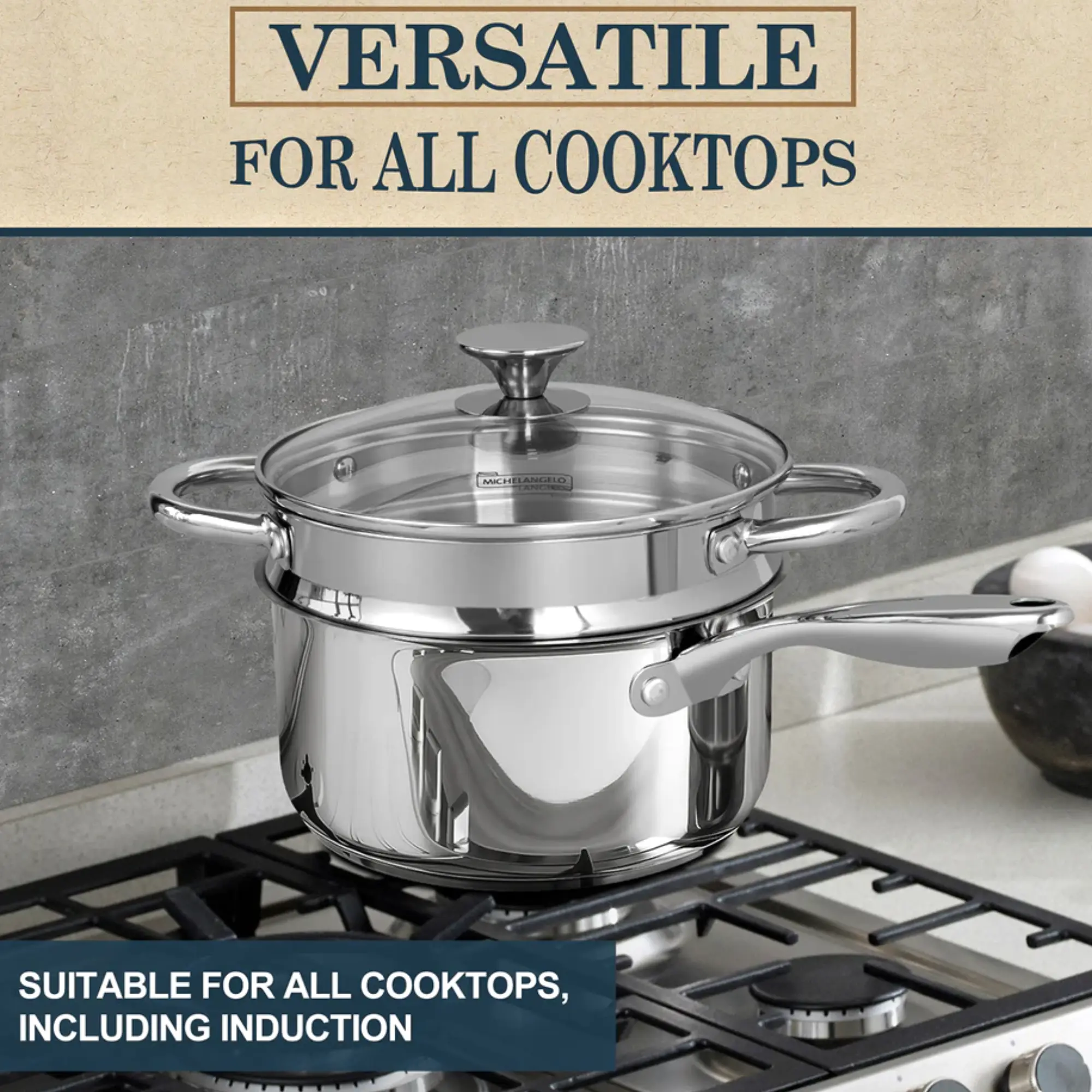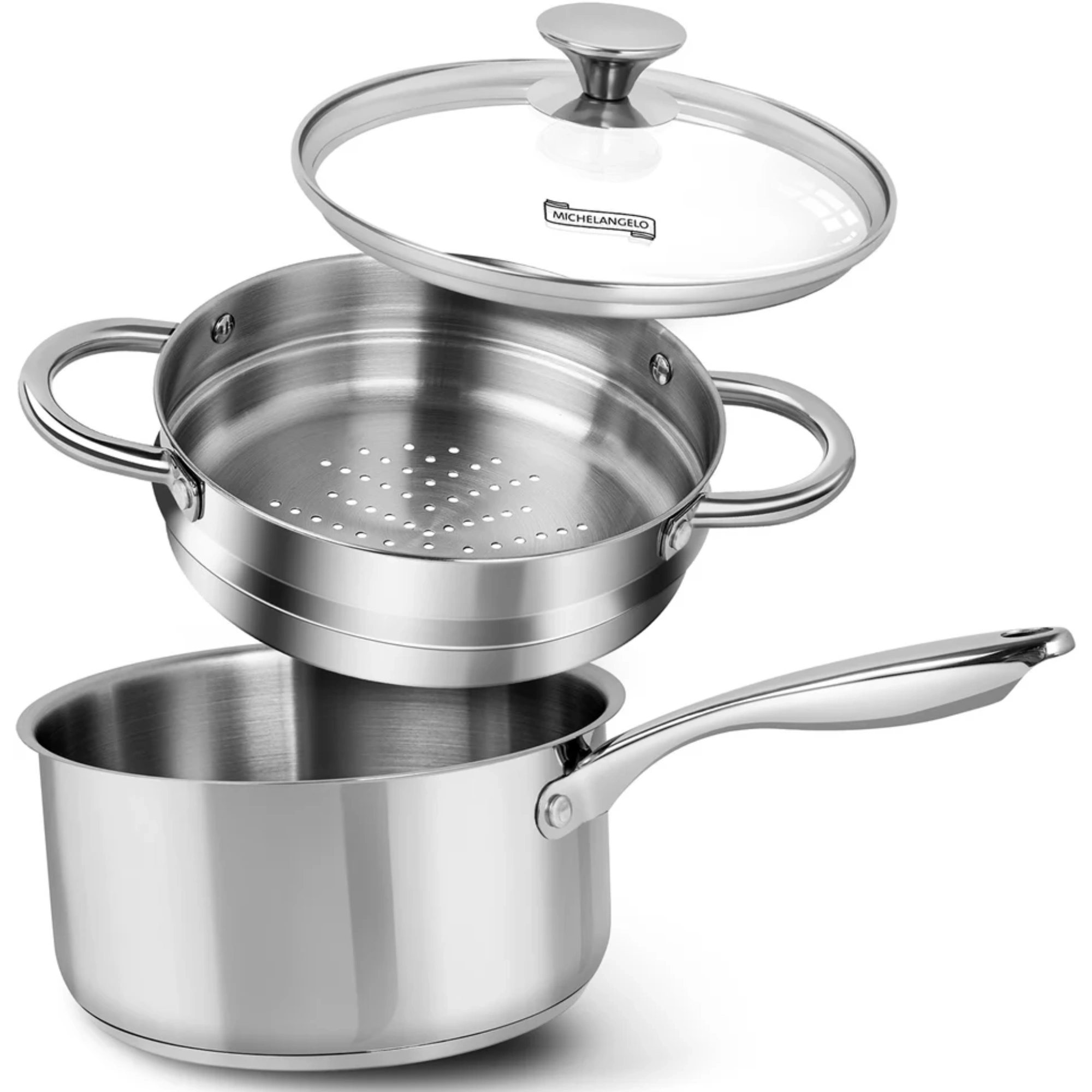 Deze multifunctionele RVS kookpan van 3 liter is voorzien van een stoominzet en glazen deksel. Ideaal voor het stomen van groenten, dimsum en meer – geschikt voor alle warmtebronnen, inclusief inductie.